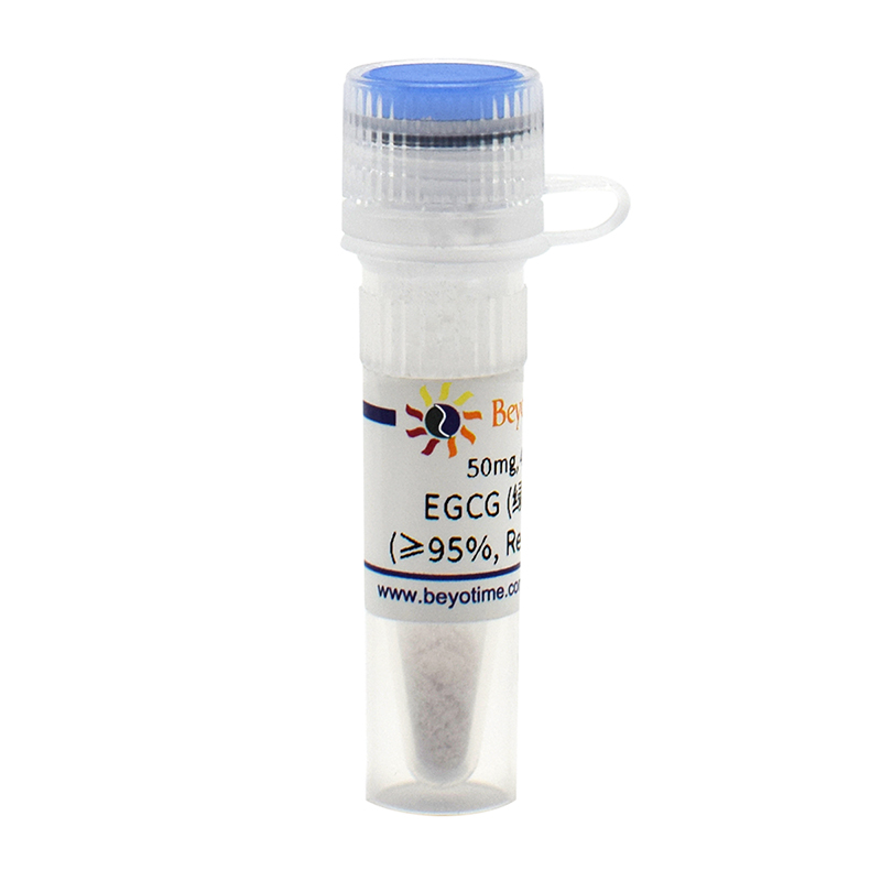 Biochem/physiol Actions (-)-表没食子儿茶素没食子酸酯 (EGCG)是一种抗氧化多酚类黄酮化合物,它通过抑制端粒酶和DNA甲基转移酶活性而发挥抗肿瘤作用。EGCG可抑制基质金属蛋白酶-2(MMP-2)、MMP-9的表达并降低肿瘤的侵袭能力。EGCG可阻断表皮生长因子(EGF)受体和人表皮生长因子受体-2(HER-2)的活化。EGCG可增加骨矿物质密度并减少骨吸收。EGCG通过抑制核因子κ-B受体活化因子配体(RANKL)诱导的核因子 κ B(NF-κB)转录活性,进而抑制破骨细胞生成。EGCG可减少骨骼肌萎缩。EGCG具有抗衰老性,可增加成肌细胞分化。EGCG可抑制脂肪酸合成酶和谷氨酸脱氢酶活性。