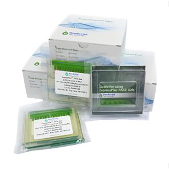 GenScript ExpressPlus™ PAGE Gels are high-performance precast mini polyacrylamide gels specially designed for large loading volumes. The unique design of the cassette gives better band resolution and significantly improves the sample distribution in the loading wells which increases the evenness of the band. ExpressPlus™ PAGE Gels are casted in a weak acidic pH buffer that minimizes the hydrolysis of polyacrylamide and results in extra gel stability.